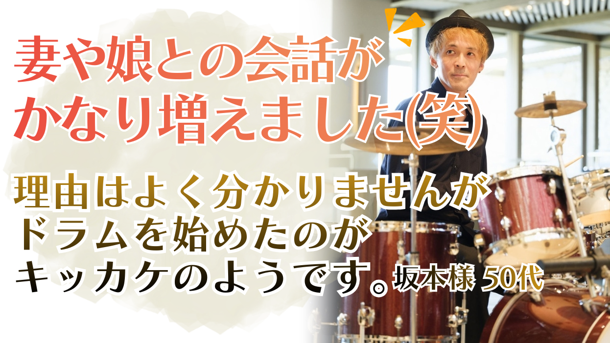 今まで「ドラムをやってみたい。でも…」と悩んでこられた方が、もっと人生を楽しく明るく、理想のものにしていくために、何かお手伝いができれば…。