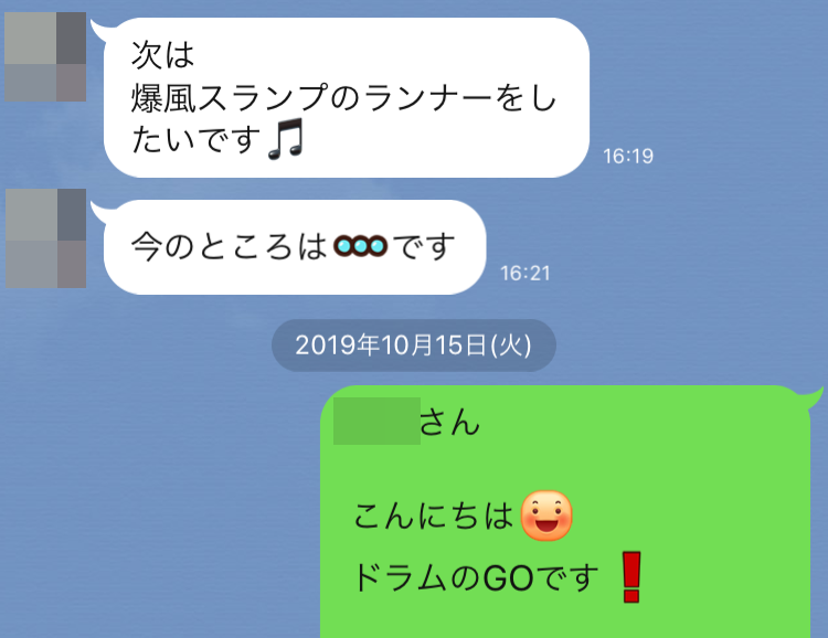ますますドラムのことが好きになりました!憧れだった曲が演奏できるようになった時は、本当に嬉しくて、思わずGO先生にラインを送ってしまいました(笑)